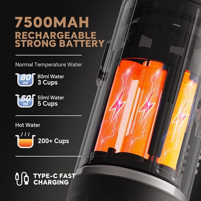 - POWERFUL BATTERY SYSTEM - Portable Electric Espresso Maker: ONLY 2 hours can be fully charged by included USB cable and fast charger. Allows you to brew hot espresso with hot or cold water. Brew 200+ cups with hot water, 4-5 cups with 50ml normal temperature water, and 3 cups with 80ml normal temperature water.