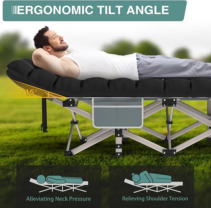- 【Easy to Fold】Maximize your adventure time with our cot's innovative folding system. Set up and fold in just 10 seconds without any tools! This quick setup means more time to explore, relax, and enjoy nature, making it ideal for every outdoor enthusiast who values convenience and efficiency.