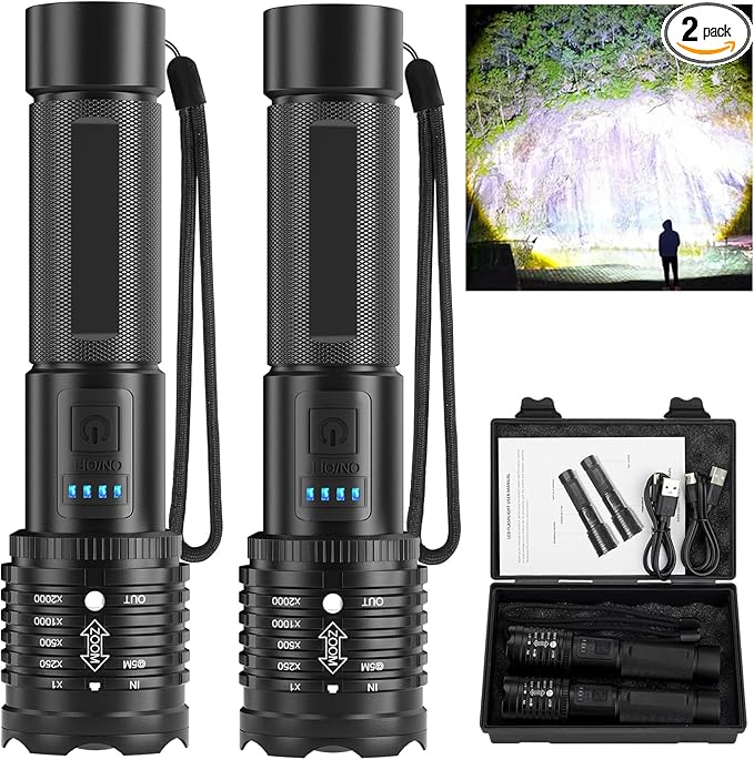 Rechargeable LED Flashlights High Lumen: 990,000 Lumens Super Bright Tactical Flashlight with 3 Modes & IPX7 Waterproof, Handheld Powerful Flash Light for Home Camping(2 Packs)