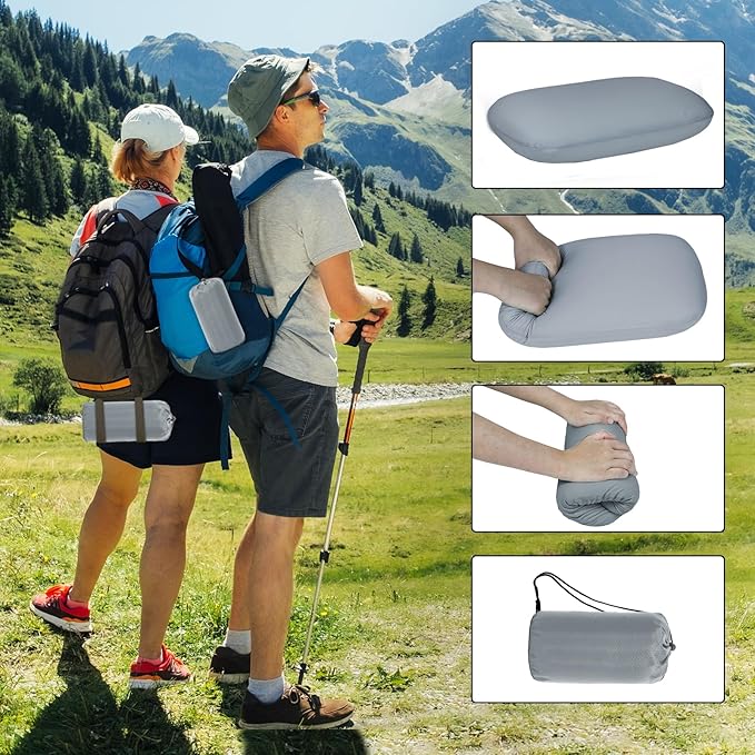 tuphen Camping Pillow Travel Pillow Cooling Memory Foam Pillows for Sleeping Camp Backpacking Airplane Trip Beach Outdoor Lightweight (Grey)
