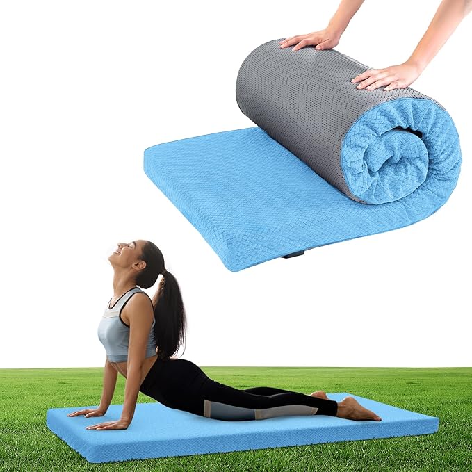 - 【PORTABLE DESIGN】The memory foam camping mattress rolls up easily for storage and travel. The lightweight mat is easy for you to carry. Equipped with storage strap for backpacking, hiking, road trips or yoga classes, etc.Our memory foam sleeping pad measures 72’’ Length, 24’’ Width and 3’’ Height to fit more persons and packing straps are included.