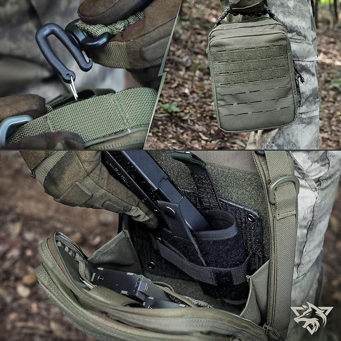 - THREE WAYS TO CARRY: Tactical Admin Pouch features three vertical back straps with metal snaps compatible with all Molle/PALS system like tactical backpacks and vests. Three exterior webbing straps for vertical/horizontal carry with removable paracord woven carry handle. You can use the shoulder strap (NOT Included) to attach 2 D-rings for hands-free.