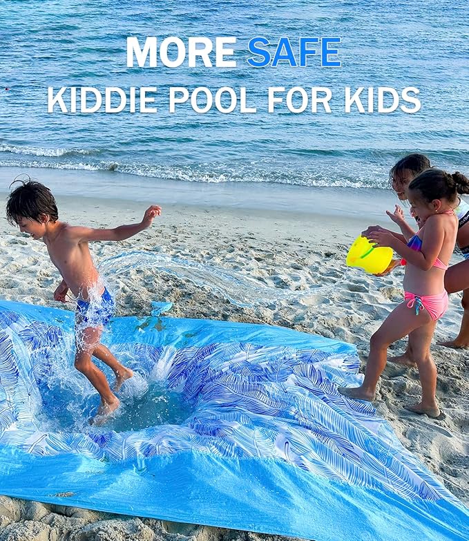 - Safe as Kiddie Pool: The beach blanket is made of waterproof material. For children aged 1-8, playing on the beach is very dangerous. You just need to dig a sand hole on the beach and use the equipped 3 water storage bags and our waterproof blanket to create a safe children's swimming pool. In this way, children can safely experience the fun of the seaside. Reduce a lot of worries for parents.The larger the sand cave is dug, the more children it can accommodate, up to a maximum of 5 children. You can also challenge yourself to try more and tell me if you have succeeded.