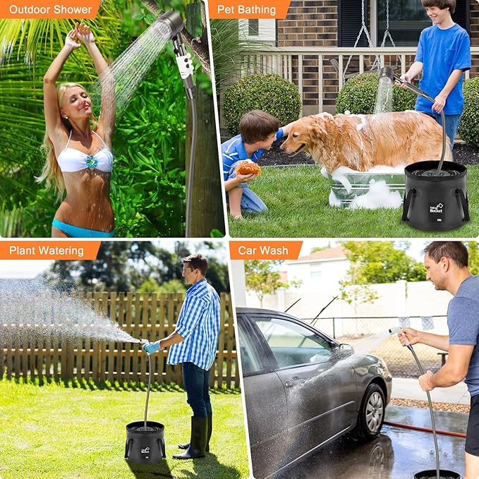 - 【Lightweight and Portable】The portable shower camping kit weighs 2.53 pounds and comes with a mesh storage bag for easy carrying and storage. Ideal for indoor/outdoor showering, camping, barbecuing, hiking, beach, traveling, children's bathing, pet cleaning, car washing and plant watering