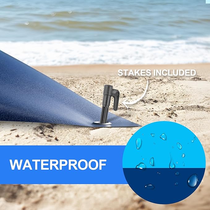 - Waterproof and Sandproof Beach Blanket: Crafted from high quality polyester fiber, this beach blanket comes with 4 corner loops and durable ABS anchors stakes, offering waterproof, windproof, and sandproof capabilities for enjoying sunny beach days.