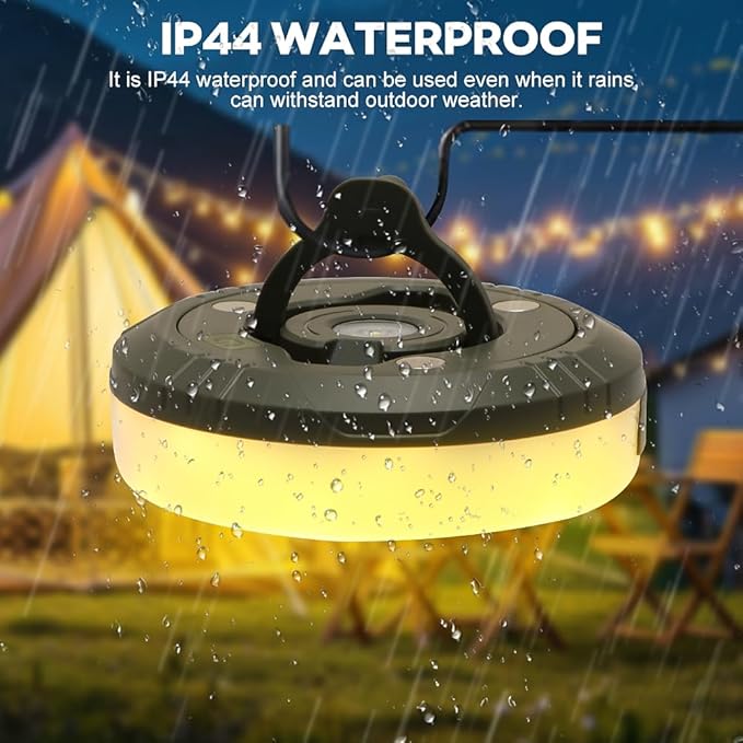 - 【USB Rechargeable】This outdoor camping light is powered by a 2000mah rechargeable battery (built-in), fast charging with type-c interface, overcharge, over-discharge and over-current protection, safe and low voltage, with 4-level power indicator light (25/50/75/100%). It supports lighting while charging. Can also charge mobile phones.