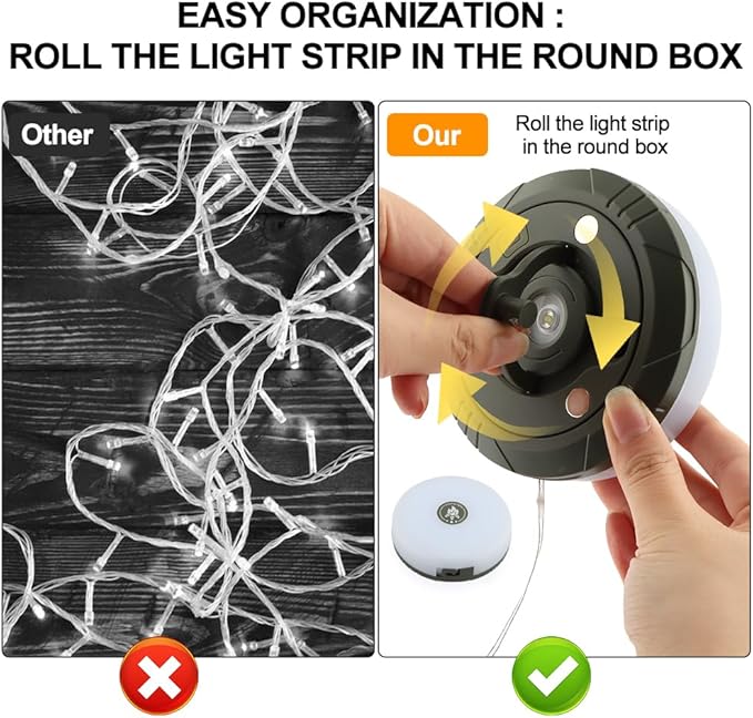 - 【Durable & Waterproof】The string camping lights is made of soft PVC and can be bent easily. The shell is made of PC+ABS plastic material. It is durable, strong and wear-resistant. It is IP44 waterproof and can be used even when it rains, can withstand outdoor weather.
