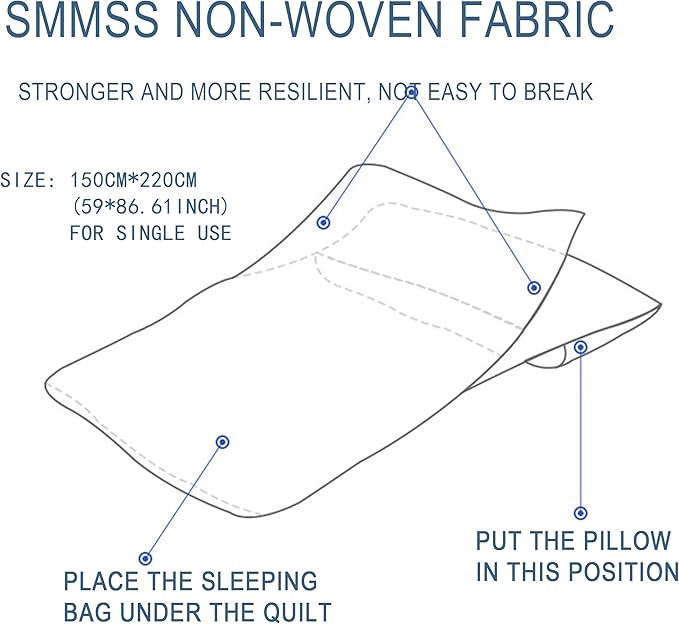 - Disposable sleeping bag material: SMMSS (new non-woven fabric) is super thick, soft, absorbent and breathable