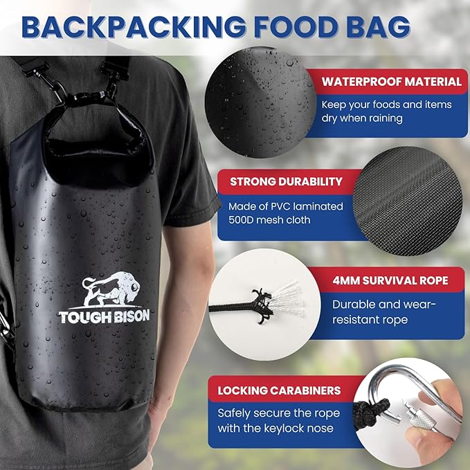 - Multi-use - Versatile and multifunctional, this bear proof bag is great not only as a bear bag for food backpacking but also as a general dry bag or gear sack. It's an excellent backpacking food storage solution and can serve various purposes on your trips.