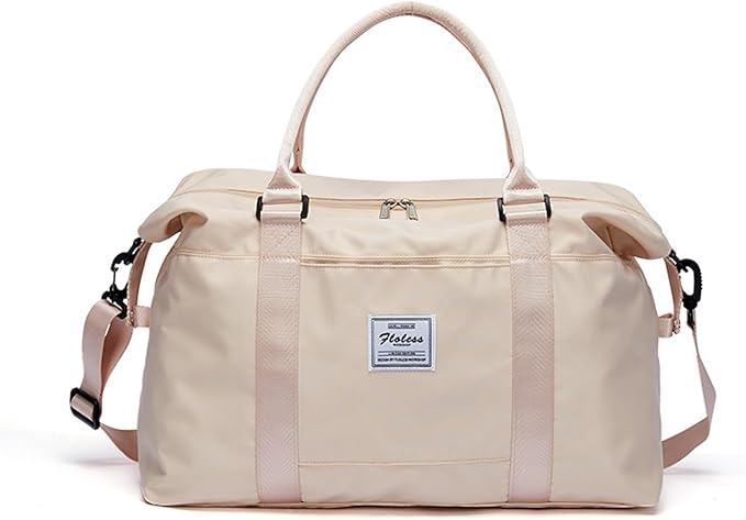 KARRESLY Travel Duffel Bag for Women,Shoulder Weekender Overnight Bag Sports Gym Tote Bag,Waterproof(Beige)