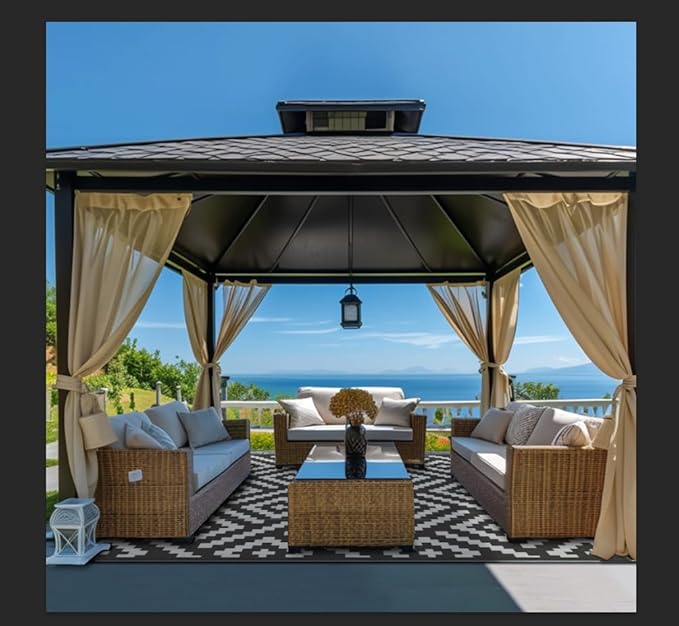 - Wide Use & Customer Service: Designed for patios, gardens, and patio furniture sets, GENIMO outdoor rug enhances RV trips, camping, balcony,picnic, porch,deck or patio set arrangements. Multiple sizes for your choice (2.5'x8', 3'x5', 4'x6', 5'x5', 5'x8', 6'x9', 6' round, 8' round, 8'x10', 9'x12', 9'x18', 8'x16', 10'x14', 10’x20’).If you get any problem with our rugs, please contact us immediately, we will offer you a satisfactory solution