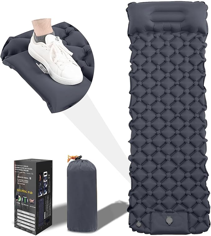 - 【Only 30s Stomp to Inflate & 1s Deflate】 Bid farewell to hand-pumping hassles. NO MORE inflating by your mouth, hands or carry a pump, just simply stomp on intake device at the bottom of the camping sleeping pad for only 30 seconds to inflate.The leak-proof membrane guarantees worry-free usage, while quick deflation adds to the convenience of your outdoor sleep preparation.