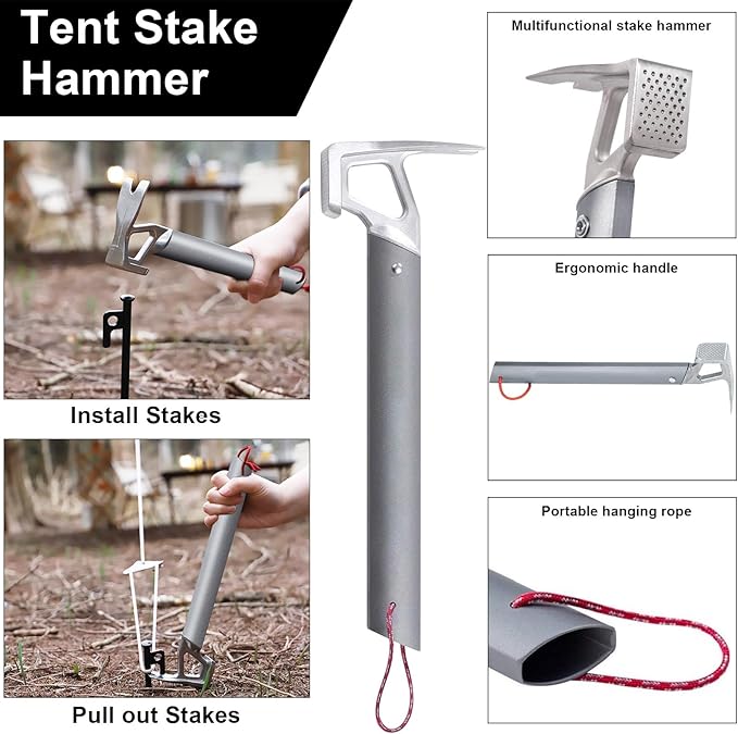 - Ideal for All Campers: Whether you're a seasoned camper or just starting out, this tent hammer is a must-have in your camping gear for easy and effective stake installation.