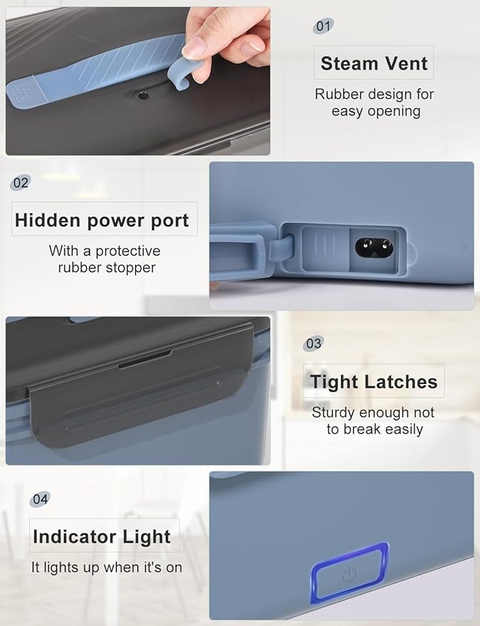 - Stronger Leak-proof Properties - The electric lunch box cover has latches on all four sides, and its coverage area is designed to be larger, making it stronger and not breaking easily. And the built-in rubber sealing ring can ensure that the food will not leak during transportation and keep the food fresh! No need to worry about food spills, even in a shaky car environment!