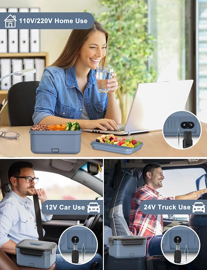 - 4-in-1 Portable Food Warmer - It is equipped with 2 power adapters: a 110V/220V home indoor adapter, a 12V/24V car, and a truck adapter. Plugin the power to heat up the food, it can be used at home/office/car/truck. Let you enjoy fresh and hot meals whether you are working outdoors or indoors! This also makes an ideal, heartwarming white elephant gift for family and friends!