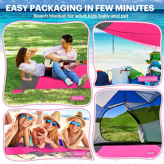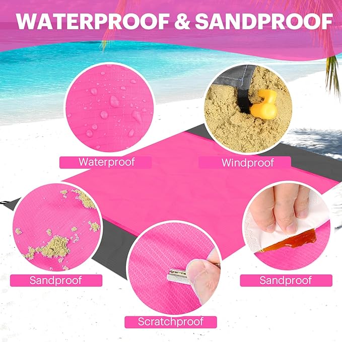 - Skin-friendly waterproof beach mat: Sewn polyester fabric, it has good wear resistance and dries quickly, improving your comfort at the beach or outdoor activities. Let your family and friends enjoy the sea and sun on the summer beach!