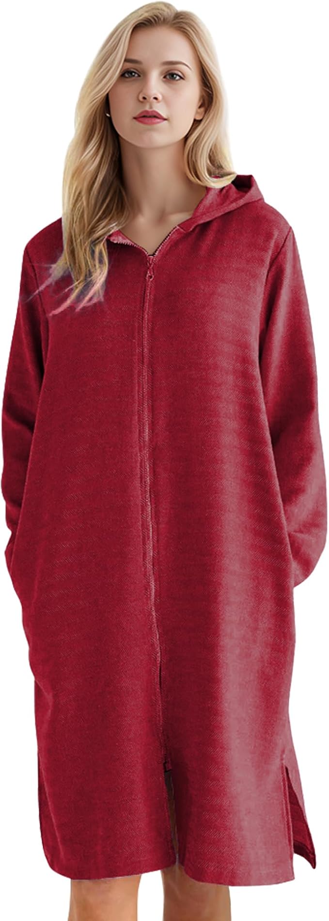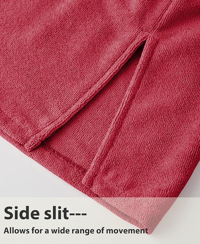 Weecreeture Hooded Towel Poncho with Zipper and Pocket, Surf Poncho for Men and Women, Beach Bath Changing Robe Cover Up Red M