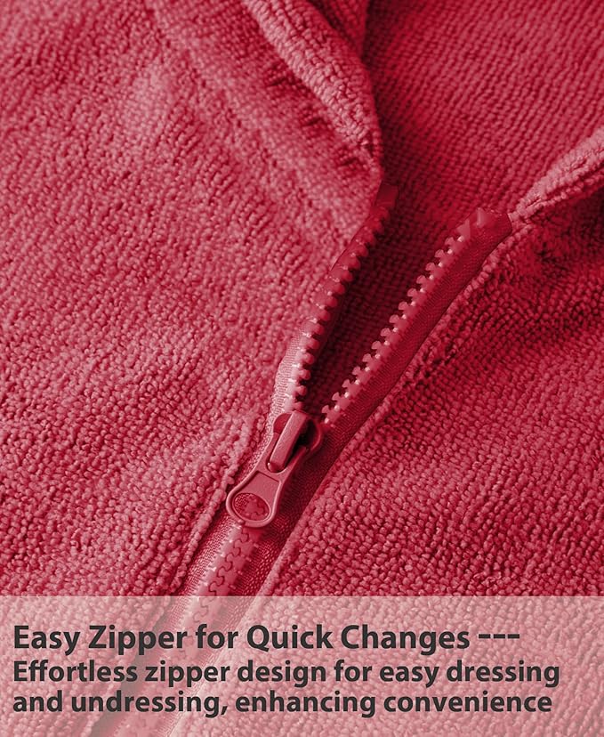 - Experience Seamless Transitions: Wave goodbye to public changing awkwardness! Our towel poncho revolutionizes the process with an integrated zipper, offering privacy and convenience. Effortlessly switch outfits post-beach, pool, or water sports activities in seconds