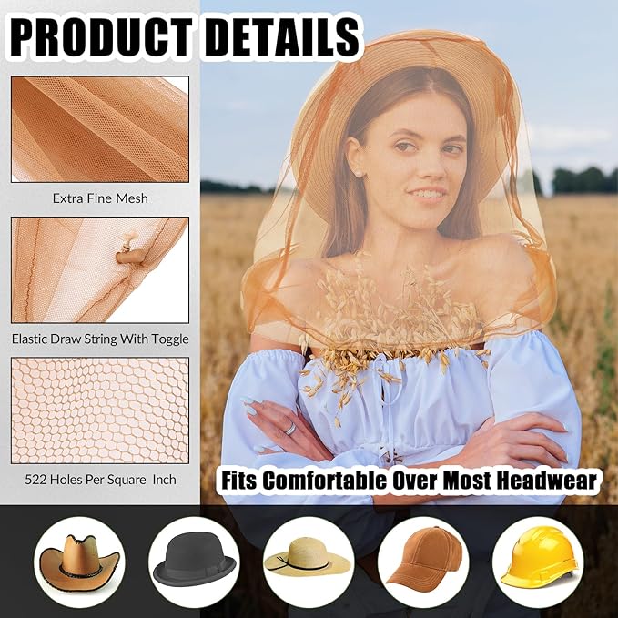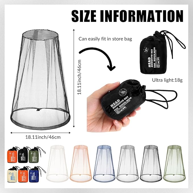 • Size: each mosquito net is approx. 18.11 x 18.11 inch/ 46 x 46 cm in size, big enough for men, women, youth, or elderly wearing