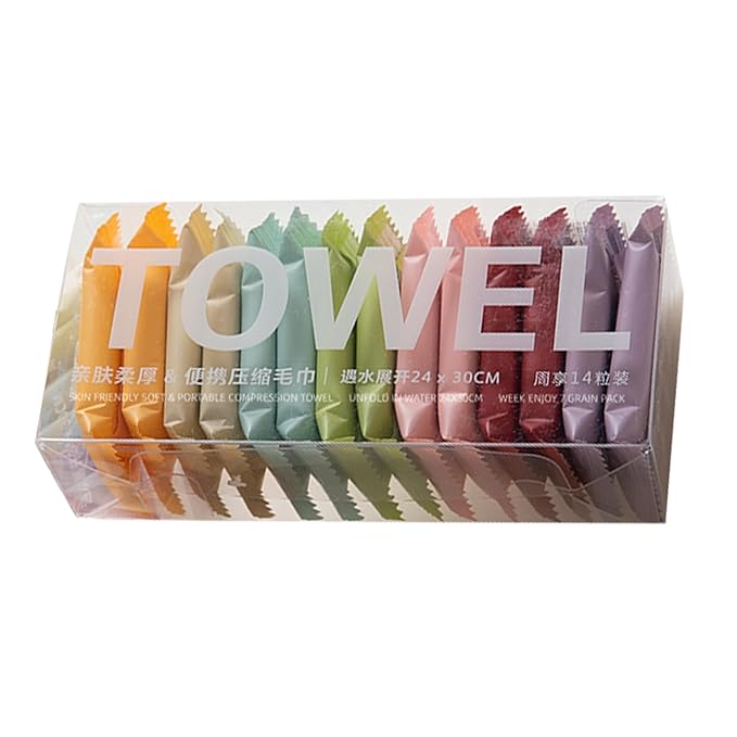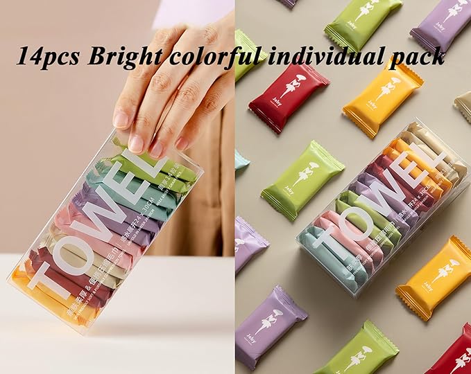 - 【Compressed Convenience】14pcs travel towel in a transparency pack, each product is individually to prevent dust, can be easily keep in any small bag or suitcase. portable and space-saving, essential for business trips and travel.