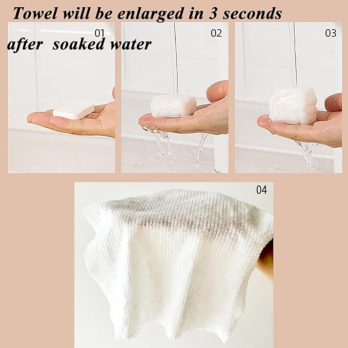 - 【Versatile Uses】After soaked water the size can be enlarged to 11.81*9.44inch in 3 seconds, At only 1.57" x 1.14" x 0.31" when compressed, carry it with you for short traveling, hiking, camping or take it as home wipes and daily washing.