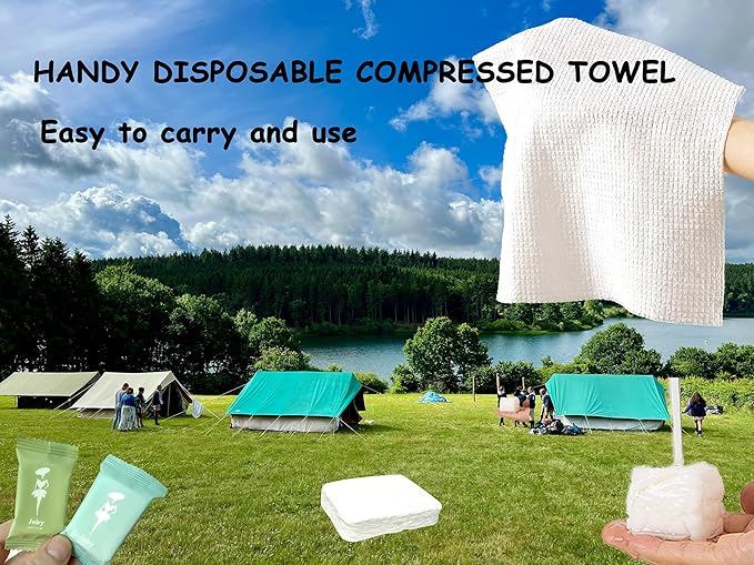 - 【Quality Material】Compressed disposable towel tablets is made of woven from a cotton and microfiber blend that feels smooth without chemicals, super soft,hard wearing,not easy tear, handy to carry, easy to use.