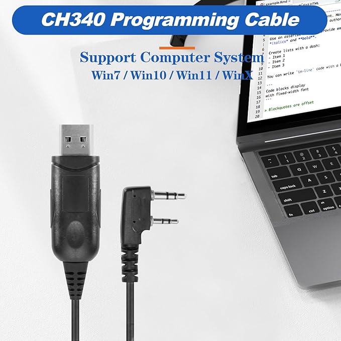 - 【CH340 Programming Cable】Easily program the MaxTalker TK-6 ham radio, Giving you access to its 200 channels with 50 CTCSS/ 105 DCS privacy codes to reduce interference from irrelevant signal. support chirp/win7/win10/win11/winX.