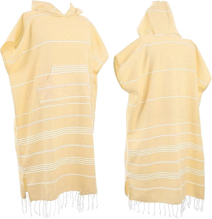 - Ideal Gift: This Turkish surf poncho is ideal for trips to the beach, pool, or even camping; With this beach towel poncho, you no longer need to worry about your towel flying away while changing in a parking lot;It's makes an ideal gift for surfers, swimmers.