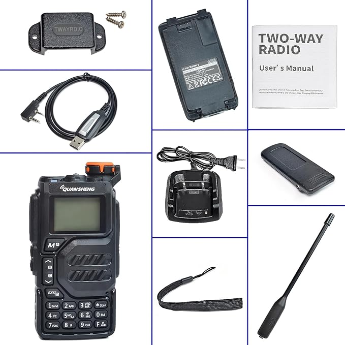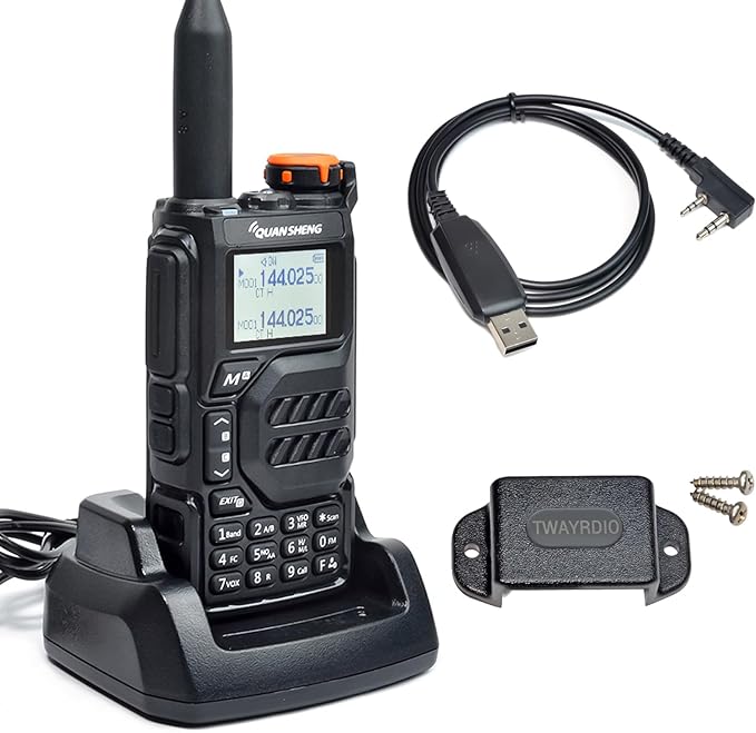 TWAYRDIO Quansheng UV-K5 NOAA Emergency Weather Receiver with Programming Cable and Radio Holder, 5W VHF UHF Dual Band Two Way Radio, AM/FM Airband Receiving Walkie Talkie