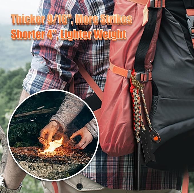 - Fire Starter Survival Tool: The flint can generate sparks and ignite flames in any humid environment. It is the perfect fire starter survival tool for camping, hiking, hunting, barbecue, or other wilderness survival.
