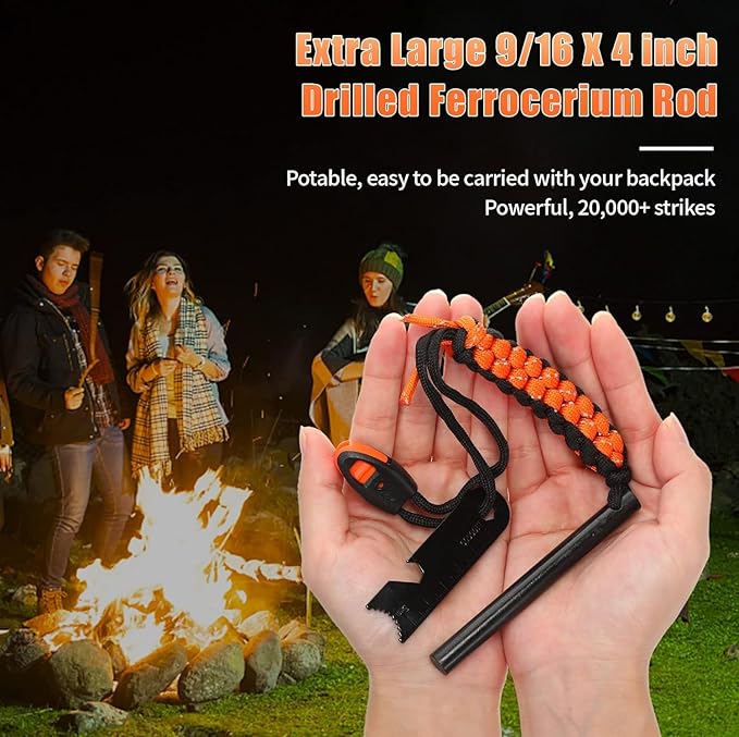 - Fire Starter Survival Tool: The flint can generate sparks and ignite flames in any humid environment. It is the perfect fire starter survival tool for camping, hiking, hunting, barbecue, or other wilderness survival.