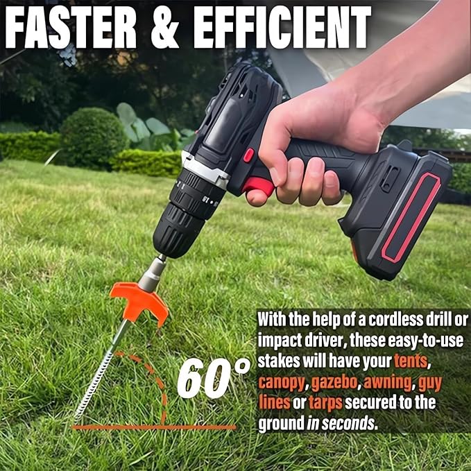 - Screw-In Tent Stakes Design: With their innovative screw-in design, these tent stakes offer hassle-free setup. Simply twist them into the ground using a drill or by hand, saving you time and effort during campsite assembly.