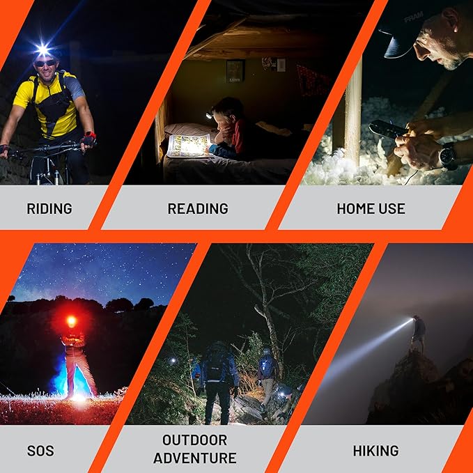 - PERFECT CHOICE: The Hands-free headlamp can be used for hiking, as a running headband, on kids camping gear, for work, etc.