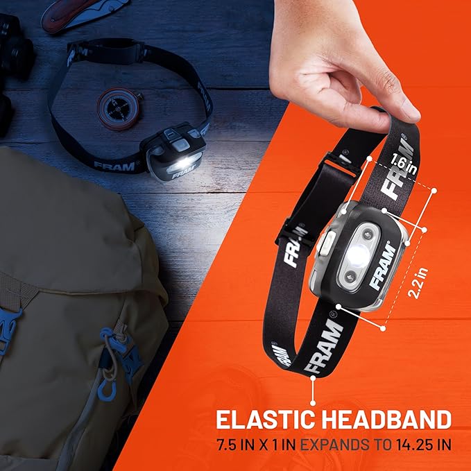 FRAM FAC40008 Headlamp Flashlight with White & Red Light, Comfortable Headband, Survival Gear, Waterproof lamp.