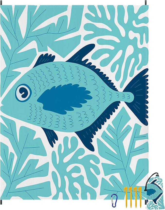 - 【Beach Blanket Waterproof Sandproof】This quick-drying, breathable blanket is made of ripstop polyester. You can shake the beach mat to get rid of sand or other debris.Unfolded Size:108''x 82'', it could hold up to 1-6 people, providing plenty of space for people to sit, lay or play.Includes 4 stake anchors, a safety carabiner and a carry bag.