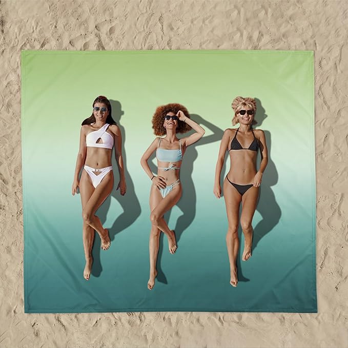 Beach Blanket Waterproof Sandproof, Large Beach Picnic Blankets Foldable Sand Free, Beach Mat Windproof w/Stakes and Corner Pocket for Outdoor, Travel, Camping, Hiking, Beach Essentials-Green Gradient