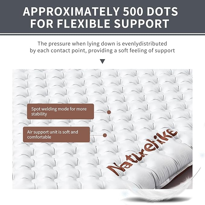 - COMFORTABLE AND STURDY SLEEPING PAD: Punching point structure, providing tough support, the pressure is evenly distributed by each contact when lying down, providing a soft sense of support, the whole soothing relaxation. 71.4 * 22.6inch/183 * 58cm size is enough for you to turn over freely on the air cushion