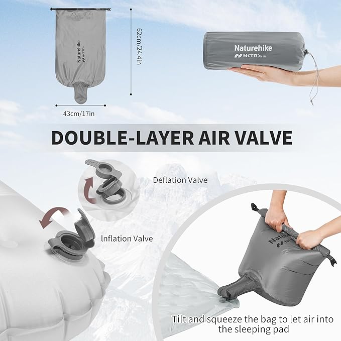 - PATENTED DUAL-VENT VALVE DESIGN: Only open the outer air cover can be inflated in one direction to reduce air leakage, open the inner air cover can be quickly deflated to enhance efficiency. Also free inflatable bags, straps and TPU repair allowance
