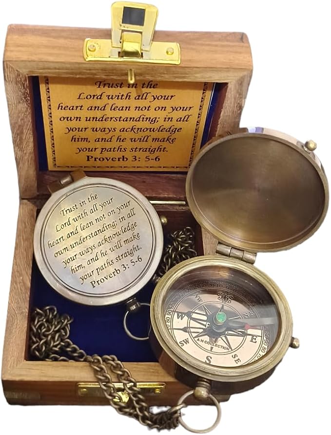 - Trust in The Lord with All Your Heart -Proverbs 3: 5-6 Quote Engraved Compass, Christian Religious Gifts, Gift Compass, 2024 Graduation Day Gifts- Baptism Gifts Compass for Women Mens Boy Girls