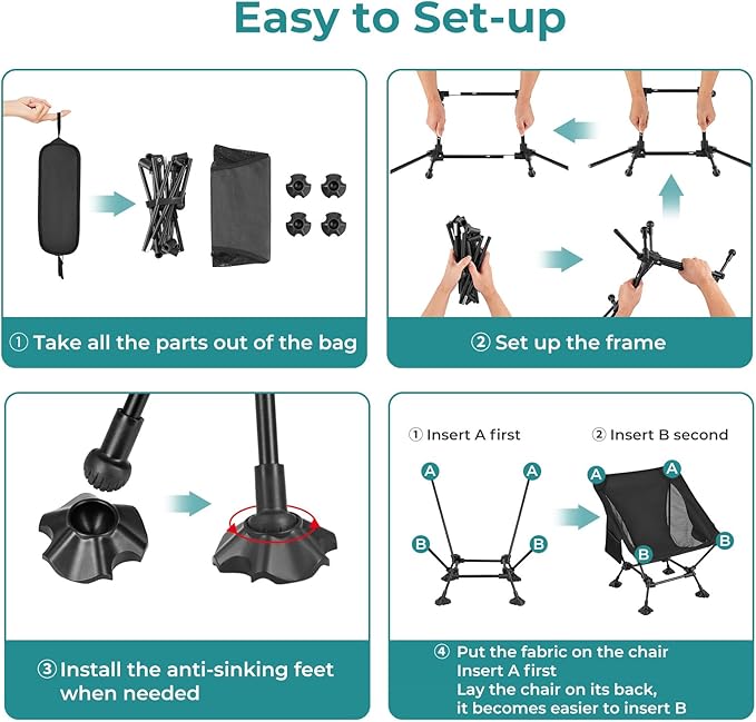 - Built to Stay Put: No Matter the Terrain: Equipped with oversized anti-sinking feet and made with 7075 aviation-grade aluminum alloy, this chair stands firm on sand, grass, or rocky surfaces. It’s ultra-light yet surprisingly sturdy, offering stable seating for adults up to 330 lbs.