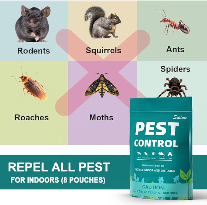 - LONG-LASTING PROTECTION - Each pouch effectively repels pests and rodents for up to 30 days. Use the pest repellent pouch to protect against mice/mouse, rats, spiders, roaches, ants, moths & other pests.