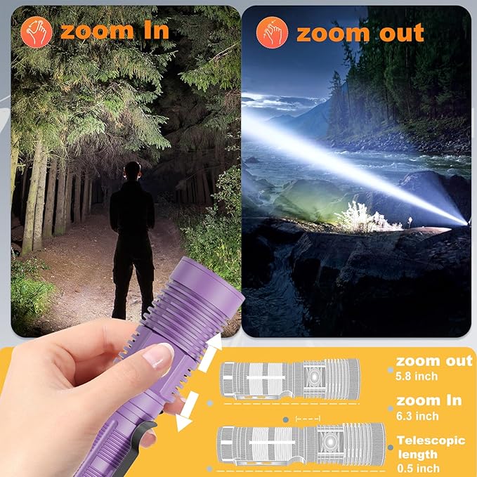 - Magnetic Flashlight, Zoomable : Small Rechargeable Flashlight with Powerful Magnet base, allow you fix this led flashlight on any metal surface to really free your hands; With Zoomable function, it can work as a spotlight when zoom out , and also can be used as a floodlight when zoom in.suitable for outdoor survival activity such as camping hiking travel,nigh walking or other emergency situations