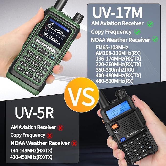 - ✅【Upgrade Of UV-5R 】Frequency Range: 144-148MHz, 420-450MHz,Up to 999 storage channels and a 1.77 inch large color screen, making operation more convenient.The enlarged walkie talkie body size is designed ergonomically to enhance user feel.FCC ID:2AJGMUV17M