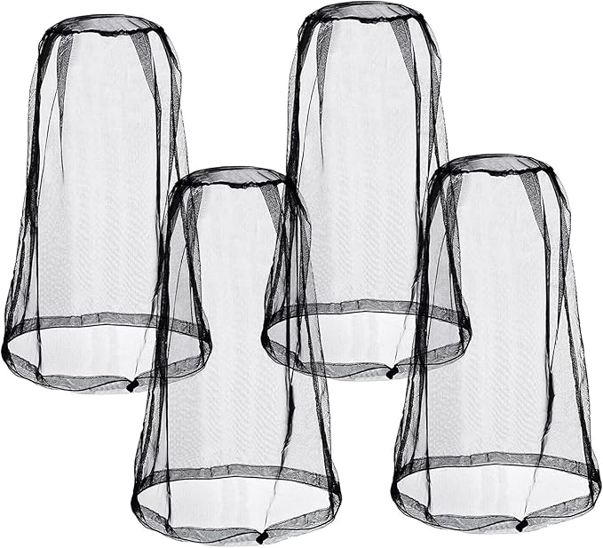 Mosquito Head Net Mesh, Bug Net for Head Mosquito Face Net for Outdoor Hiking Camping Fishing Mosquito and Insert Protection (4 Pack Black)
