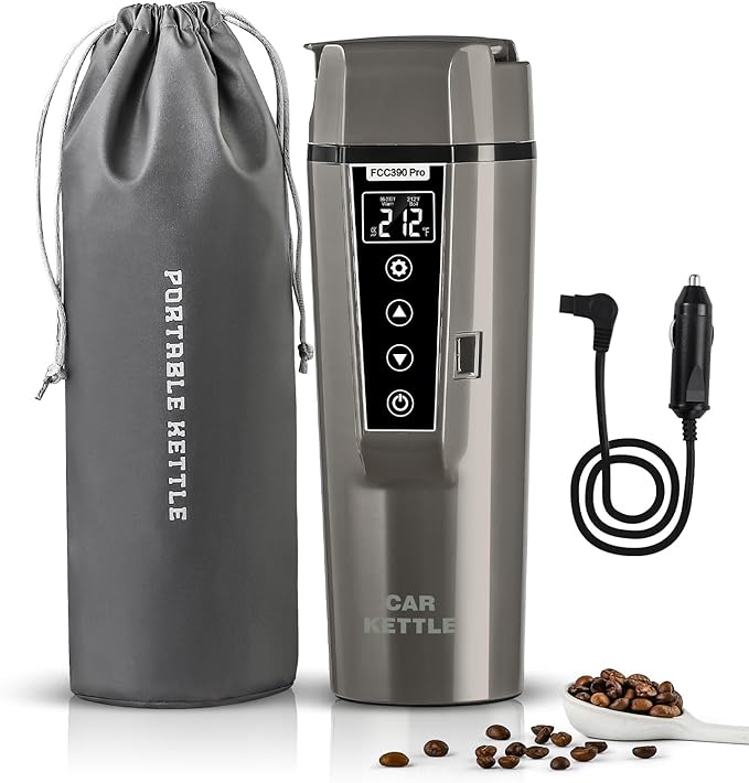 - Humanized Design : BLONGKY 12v water kettle have a wide-angle flip-lid design and a small-caliber water outlet. and water is not easy to spill. The side plug design of the small car electric kettle makes it easy to fit into a car cupholder. The portable kettle for car also comes with a carry bag to reduce the likelihood of losing the power cord.