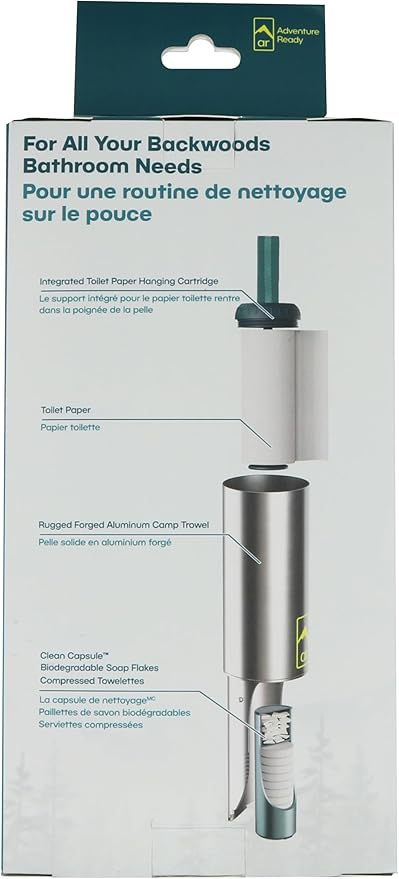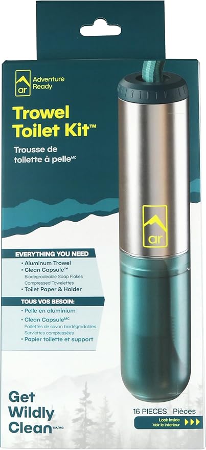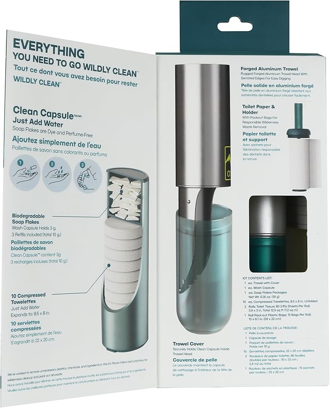 - All-in-One Outdoor Bathroom Kit - Answer the call of nature with this all-in-one bathroom kit with a backpacking trowel, toilet paper, pack out baggies, and our Clean Capsule for easy hand washing.