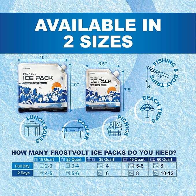 - Enhance your outdoor and travel experiences with Frostvolt Reusable Ice Packs for Coolers, designed for superior performance and reliability.