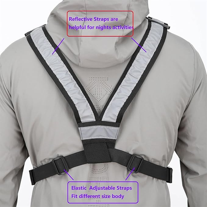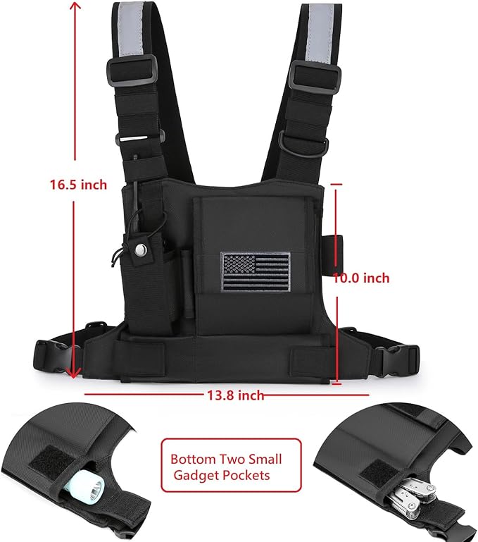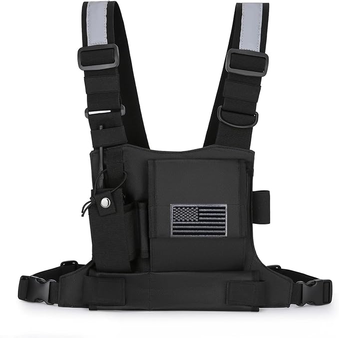 - 【Improved Design】This Chest Vest Rig has Reflective taps on shoulder straps which provides superior low light visibility. Shoulder straps are adjustable which Fit for both men and women. Front bag is great for the back up batteries, portable charger, phone, etc Chest Harness Holder Vest Rig for Two Way Radio