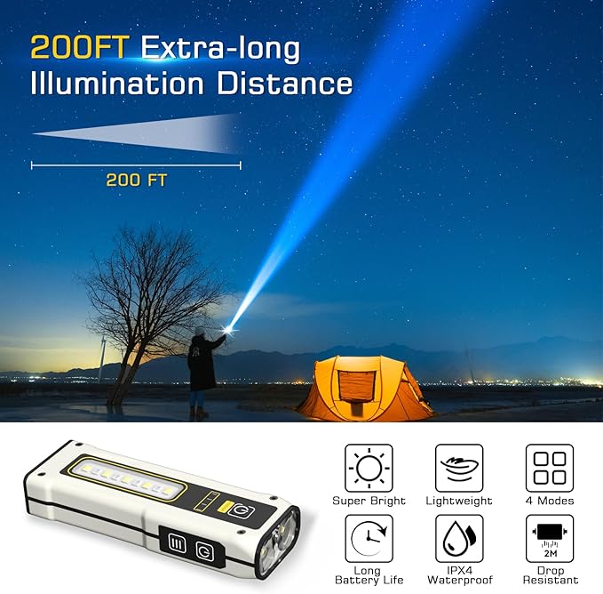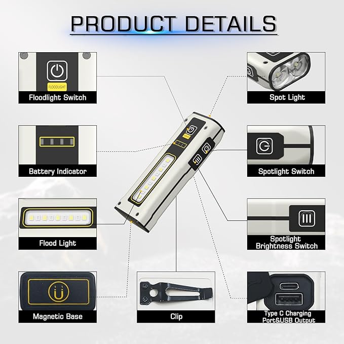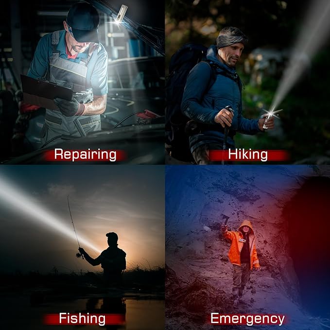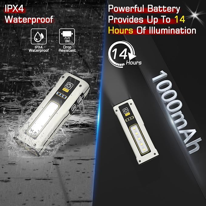 - 【Extended Battery Life for Prolonged Use】Equipped with a 1000mAh high-capacity battery, this camping flashlight offers up to 14 hours of continuous operation on a single charge. This extended battery life ensures that you have reliable lighting for long periods, whether you're working on projects, camping, or facing emergency situations.