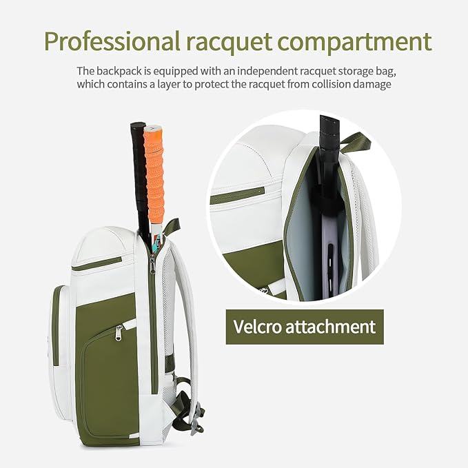 - 🎾 Convenient design: The racket compartment of this tennis racket bag is designed with padded partitions to protect each racket individually. Non-slip zippers help keep the tennis racket in place. This tennis backpack has a practical luggage strap behind it that attaches to the suitcase. There is a front pocket in the front of the backpack to store valuables, which is padded with foam to prevent damage to the items.
